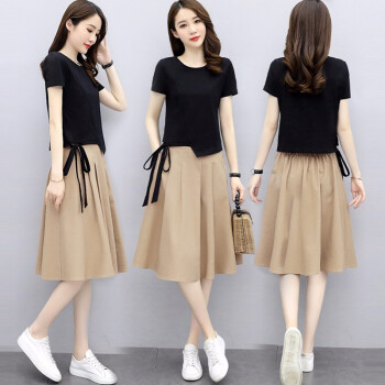 莉纱芙特雪纺连衣裙女2020夏季新款大码女装时尚气质女士棉麻中长印小个子碎花连衣裙蕾丝两件套装裙子女 图片色 M |