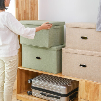 简纳 无纺布收纳箱整理箱收纳盒布艺箱子储物箱有盖亚麻收纳盒 灰色 大号(44*29*30) |
