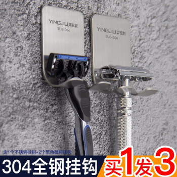 英吉利 手动剃须刀卫生间挂钩免打孔刮胡刀挂架 无痕强力粘钩刀架 304不锈钢1个送2个PP材质 |