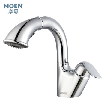 摩恩(MOEN)家用浴室面盆龙头 抽拉式冷热水龙头 洗脸盆浴室可旋转冷热龙头 精铜面龙91035EC |