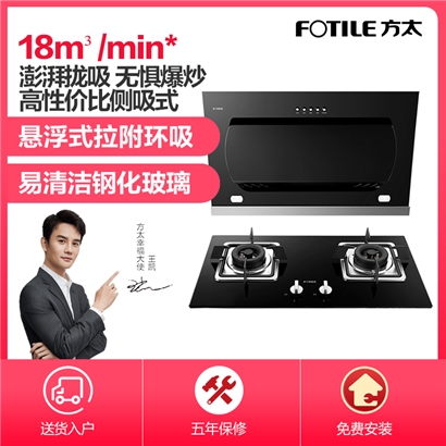 JCD8+FD23BE 悬翼式拉附环吸 18m3/min*大风量 4.1KW*大火力 烟灶套装【不锈钢+钢化玻璃/黑色】 |