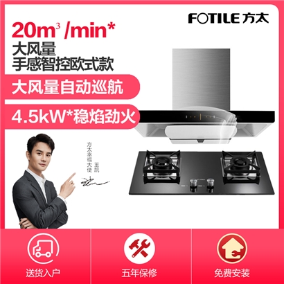 EMD20T+TH2B 手感智控风魔方 20m3/min*大风量 4.5KW*大火力 烟灶套装【不锈钢+钢化玻璃/黑色】