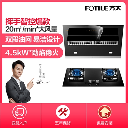 JQD2T+TH2B 手感智控 20m3/min*大风量 4.5KW*大火力 节能省气 烟灶套装【不锈钢+钢化玻璃/黑色】