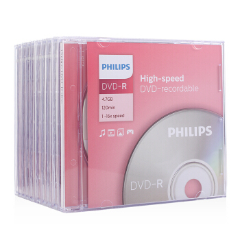 飞利浦(PHILIPS)DVD-R 光盘/刻录盘 单片盒装10片/包 16速4.7G 空白光碟 |