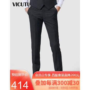 威可多VICUTU 男士商务正装舒适西裤 纯羊毛挺括有型西裤 VRS99321897 黑色 180/90-2.7尺 |
