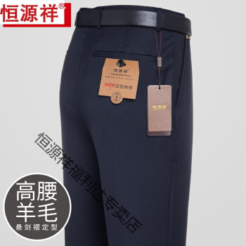 【恒源祥高端奢侈品牌 旗舰官方店】羊毛西装裤男2020夏季高腰宽松条纹免烫西裤商务正装男裤薄 西裤TH34287藏青(含29.9%羊毛) 94 |