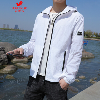 富贵鸟防晒衣男2020夏季新品超薄透气防晒服男装大码户外防紫外线速干外套夹克弹力皮肤衣垂钓服抗皱 白色 XL |