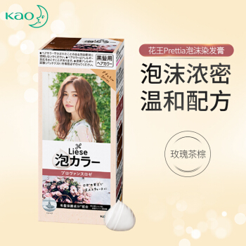 日本进口 花王(KAO)Prettia泡沫染发膏 普罗旺斯玫瑰茶棕 (1液34ml 2液66ml 护发素8g )植物泡泡不伤发 |