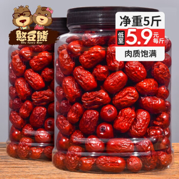 憨豆熊 新疆红枣2500g/500g优质和田特产若羌小灰枣5斤包邮 【香甜可口*500g】(尝鲜大袋装) |